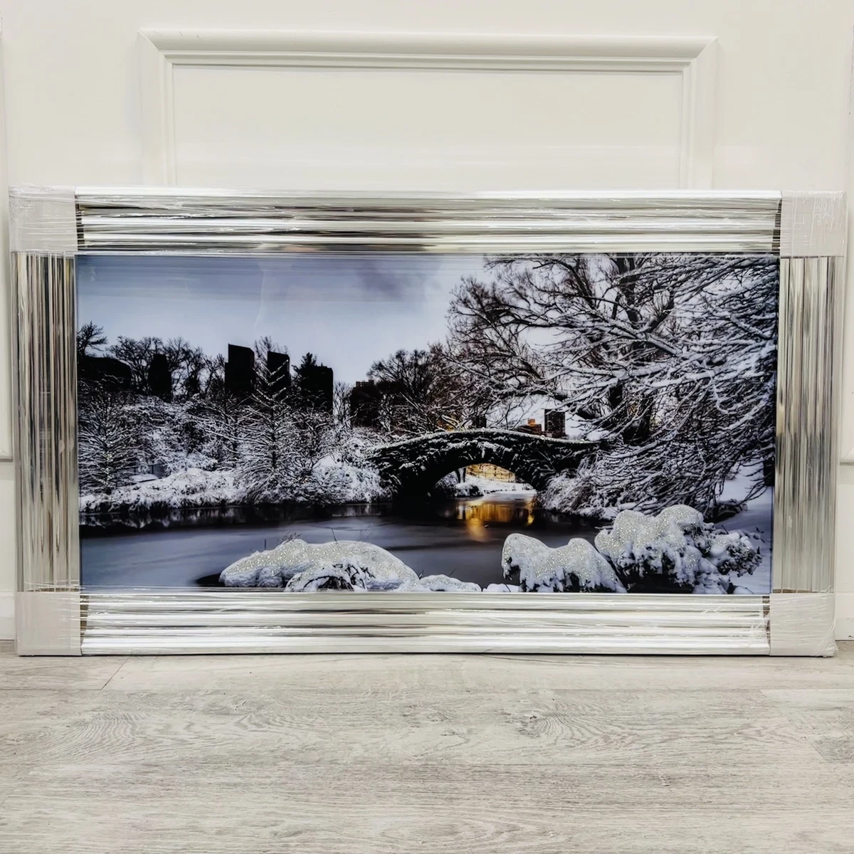 New York In Winter Bridge Wall Art Artwork Print In Chrome Step Frame 100 X 50cm Ebay